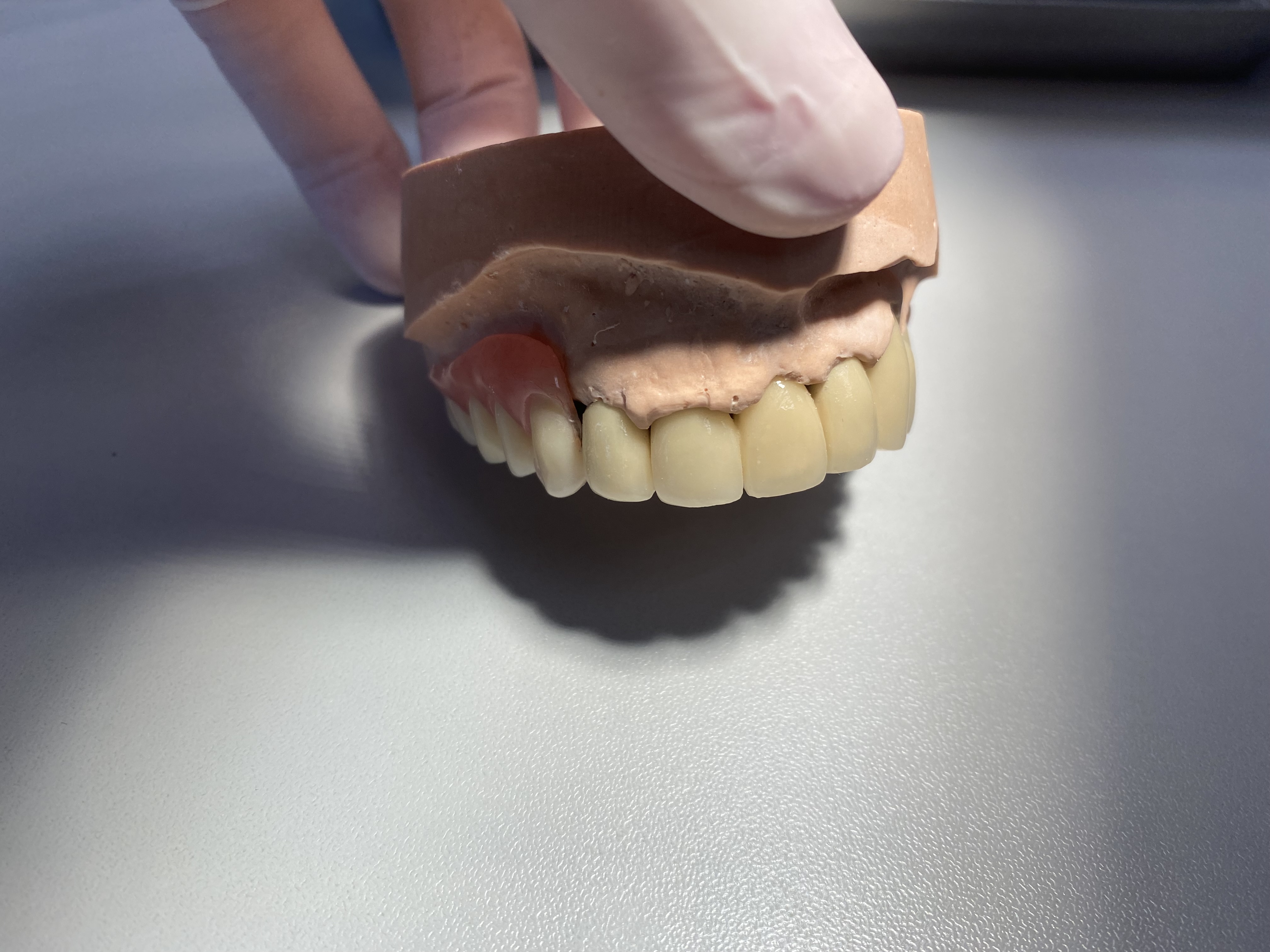 Po kolejnych 1-2 tygodniach otrzymujemy z pracowni protetycznej gotową pracę ,którą mocujemy u pacjenta.